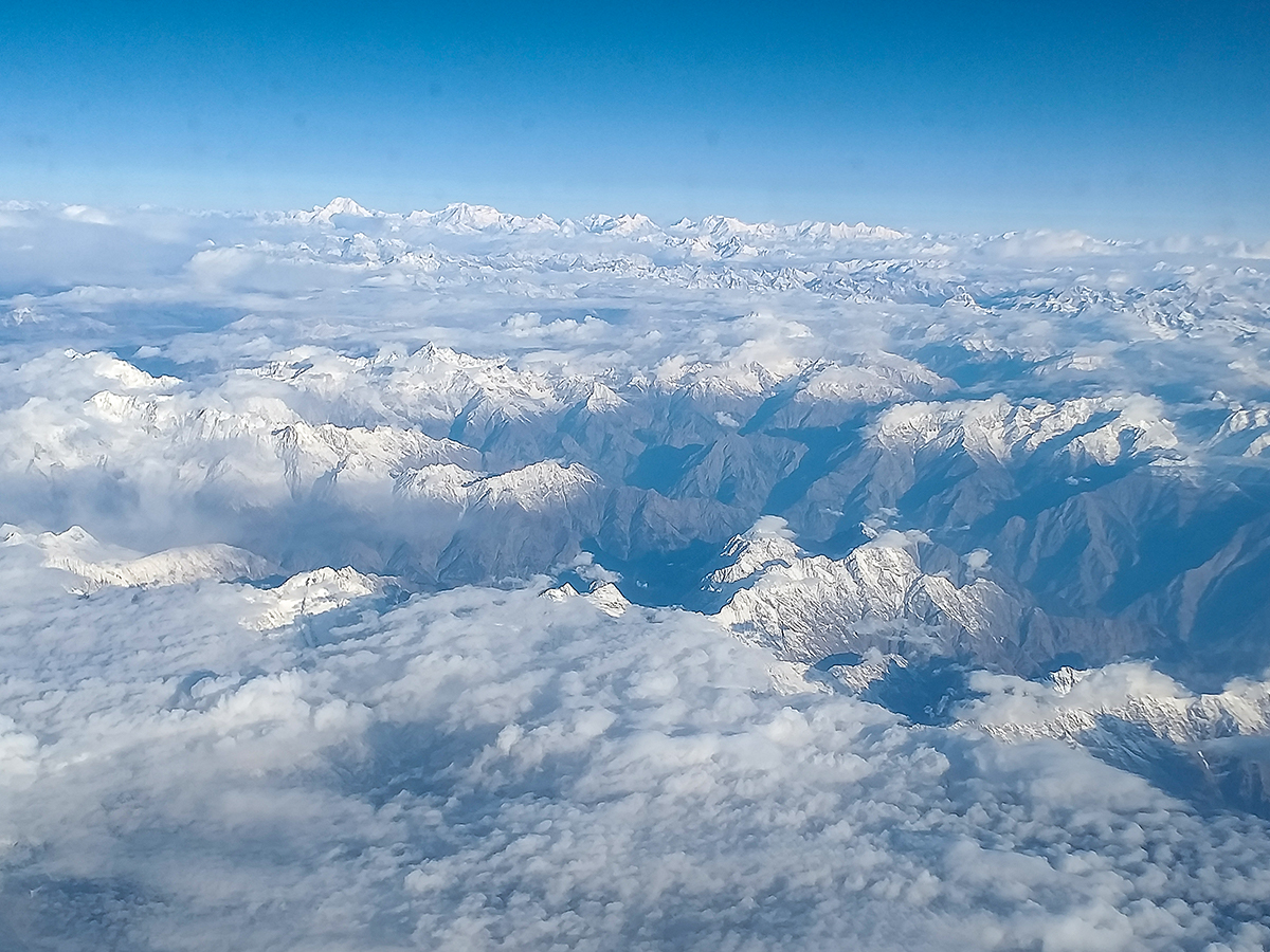 우리나라에서 아랍에미리트나 카타르 등 중동지역으로 이동을 할 때는 비행기가 히말라야가 있는 중앙아시아 지역을 지나는 경로를 지나는데... 운 좋게 날씨와 시간이 맞을 때에는 대자연이 연출하는 숨막히는 장관을 볼 수 있는 기회를 얻기도 한다.