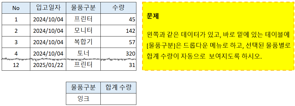 이번에는 드롭다운(Dropdown) 메뉴와 SUMIF 함수를 활용해서 답을 찾아가 보기로 하자.