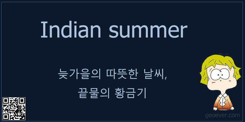 Indian summer는 늦가을 무렵 또는 첫서리 이후 잠깐 이어지는 따뜻한 날씨를 의미한다. 그리고 비유적으로는, 인생이나 상황에서 끝나갈 무렵에 잠시 찾아오는 좋은 시기나 전성기를 가리키기도 한다.