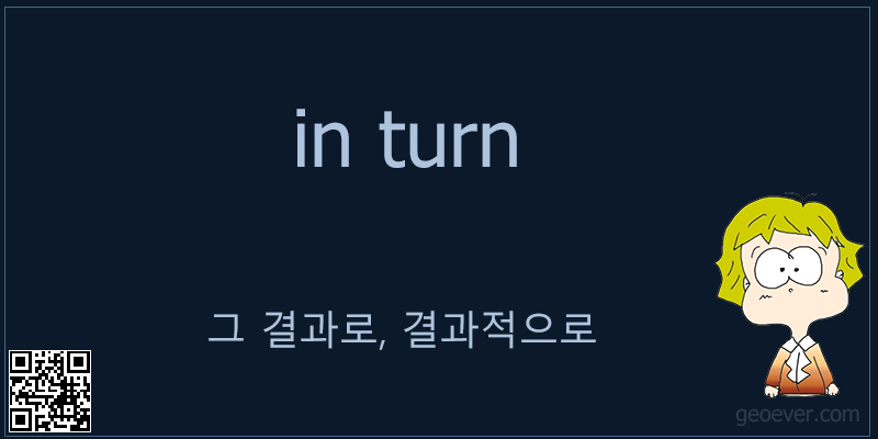 In turn은 원래 '차례대로'라는 뜻으로 사용되었다(예: It's your turn.처럼 turn이 '차례'를 의미하는 경우). 하지만 시간이 지나면서 인과 관계를 설명할 때 ‘그 결과로’, ‘결과적으로’의 의미로 확장되어, 글쓰기나 논리 전개에서 두 사건의 연결을 자연스럽게 해주는 표현으로 자주 쓰이게 되었다.