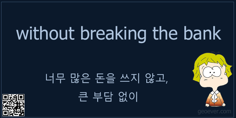 Without breaking the bank는 원래 18세기 영국에서 도박과 관련해 생긴 표현이라고 한다. 당시 도박장에서 누군가가 큰돈을 따면, ‘은행을 파산시킬 정도’라는 뜻으로 to break the bank라는 표현을 썼다고 한다. 이 표현이 변형되ㅣ어 without breaking the bank는 ‘큰 부담 없이’ 또는 ‘너무 많은 돈을 쓰지 않고’라는 의미의 숙어로 자리 잡게 되었다.