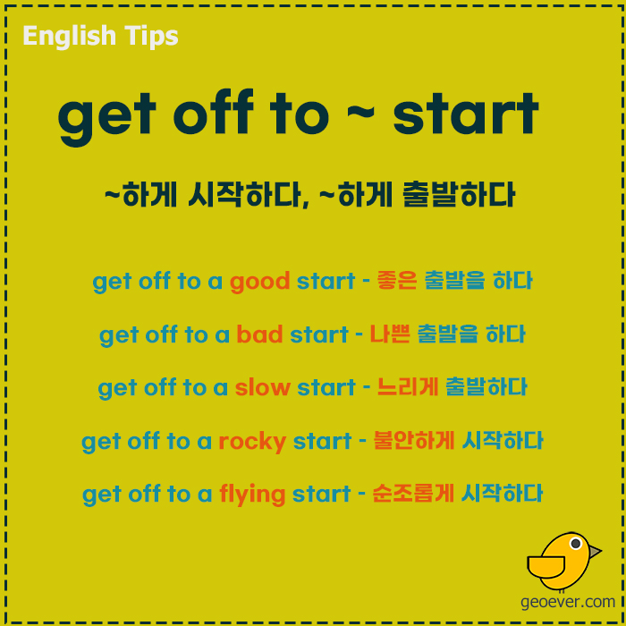 물론 이들 동사를 활용해서 세부적인 내용을 추가로 설명할 수도 있지만, 오늘은 'get off to ~ start'의 형태로 자주 쓰이는 표현을 소개하려고 한다.
