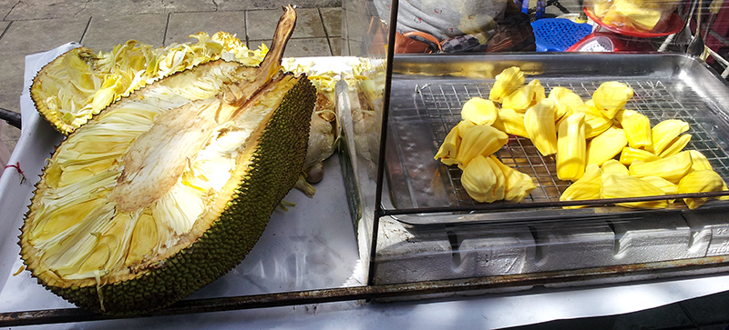 After breakfast, on our way to 'Hua Lamphong Station' for a train to Ayutthaya , we found a Jack Fruit seller on the street.
