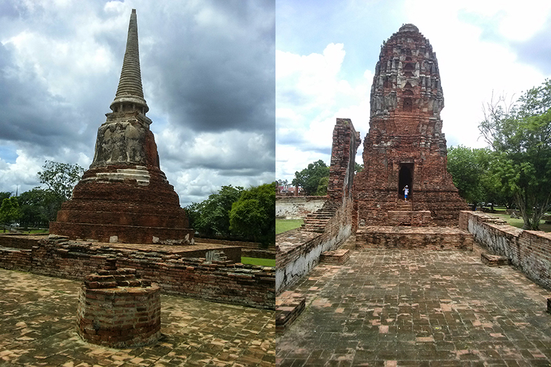 Most of the ruins of Ayutthaya are made out of red bricks, and the outside is covered with stucco.