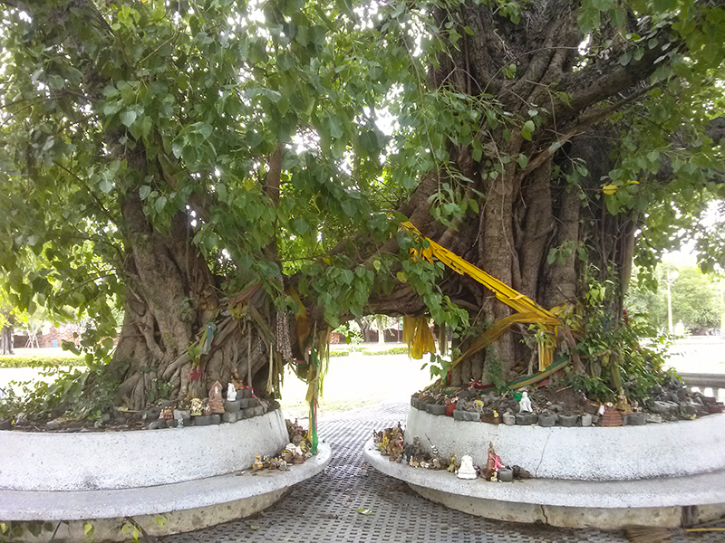 Wat Maha That has the famous head of Buddha statue.