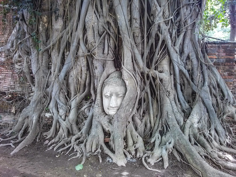 Wat Maha That has the famous head of Buddha statue.
