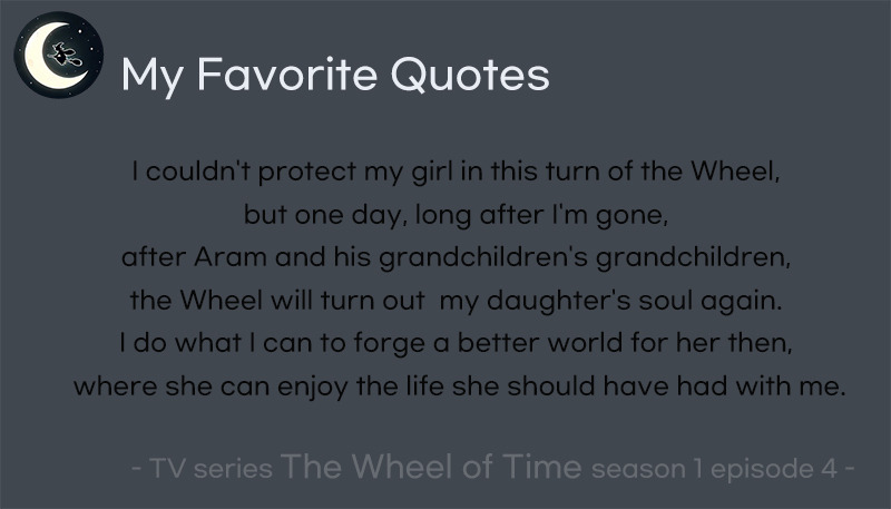 Siuan: 바퀴는... 당신이 젊든 두렵든, 속 좁거나 약하든 상관하지 않아요. 당신이 원하는 것이 무엇인지도 전혀 신경 쓰지 않죠. 바퀴는 당신을 부릅니다, 당신이 그것을 감당할 수 있든 없든요.