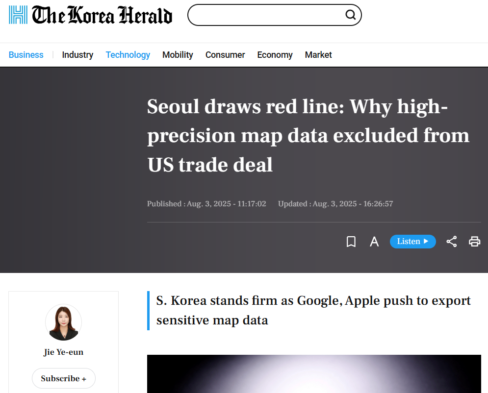 바로 고정밀 지도 데이터가 그 이슈였다. 우리 정부는 1:5000 비율로 구축된 지도를 한국 기업이 운영하는 지도 서비스에는 제공하지만, 구글 등 해외 기업에는 안보 문제로 인해 제공하지 않아 왔다.